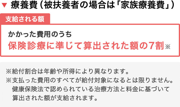 | 医師の指示により、義手・義足・義眼・コルセットなどの治療用装具を購入、装着したとき | 基準料金の7割 |